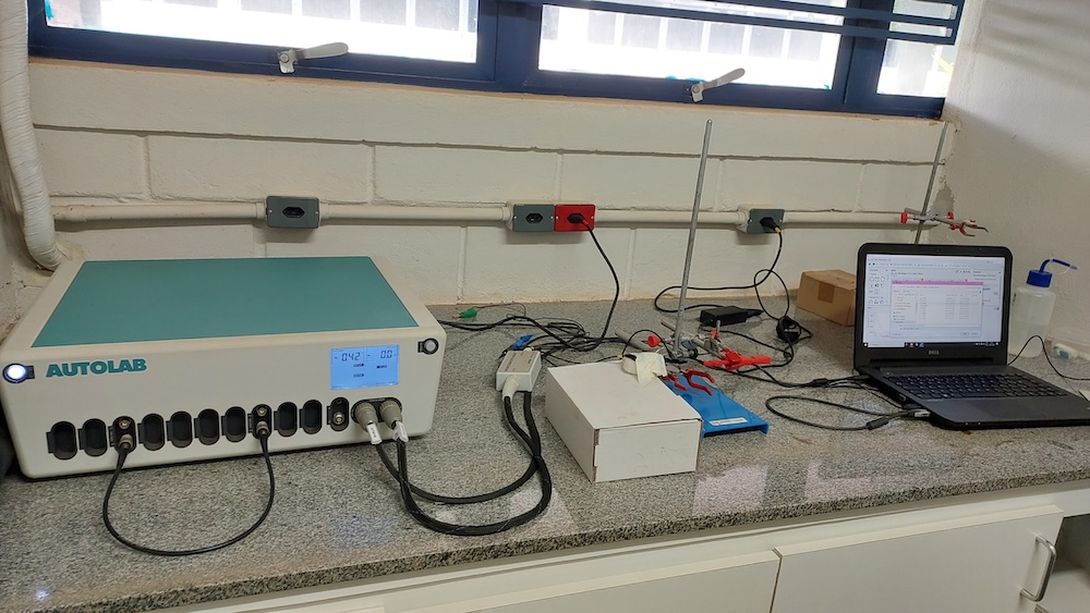 Utilizado para controlar e medir potenciais elétricos em experimentos envolvendo eletrodos. Desempenha um papel essencial em estudos eletroquímicos, permitindo a aplicação de potenciais elétricos específicos nos eletrodos e a monitorização das correntes resultantes.