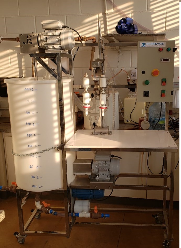 Equipamento para produção e envase de álcool em gel.