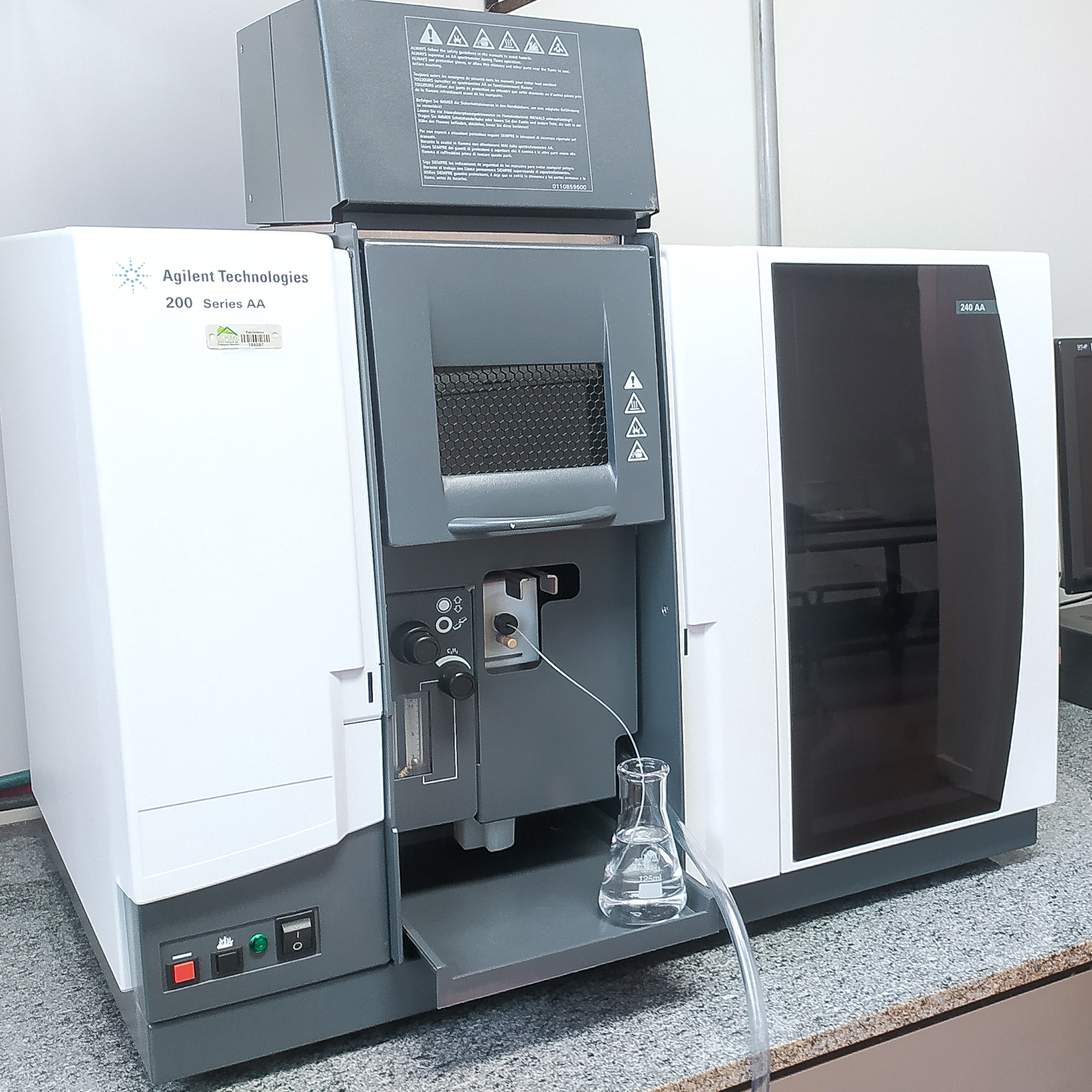 Espectrômetro de Absorção Atômica por Chama (FAAS). O equipamento de FAAS é uma ferramenta analítica versátil e indispensável em laboratórios especializados, proporcionando alta precisão na quantificação de metais em diversas matrizes e aplicações. No laboratório Multilab – Iturama, esse instrumento é utilizado para avaliar a fertilidade química do solo e realizar análises foliares, permitindo a determinação de elementos como Mg, Ca, K, Mn, Fe, Zn, Cu, entre outros.